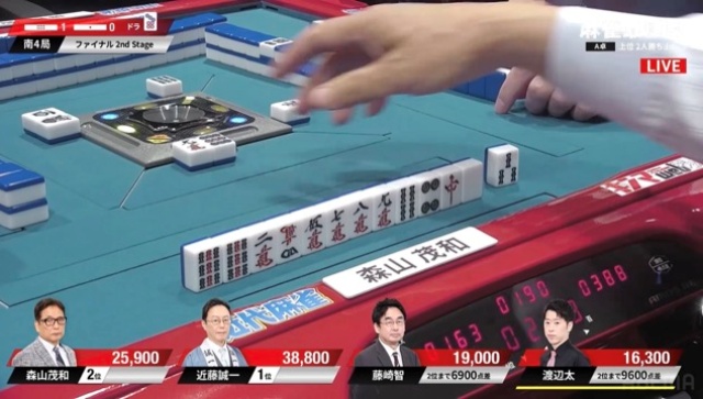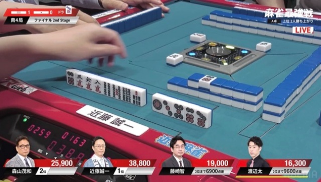 森山が若干有利ではあるが、藤崎は1,600-3,200以上のツモアガリもしくは出アガリ満貫以上、太は連荘必至という条件。