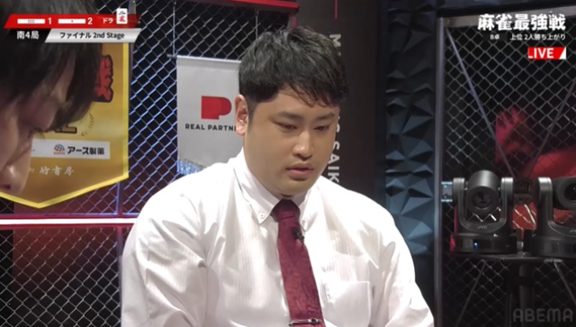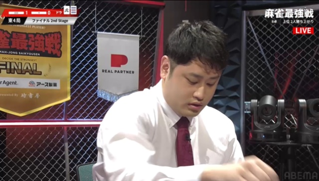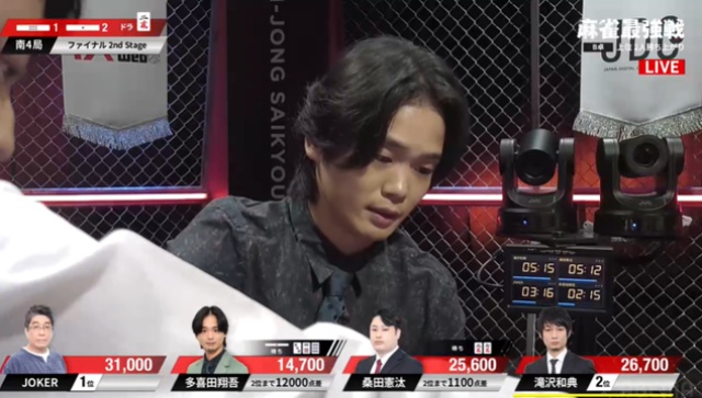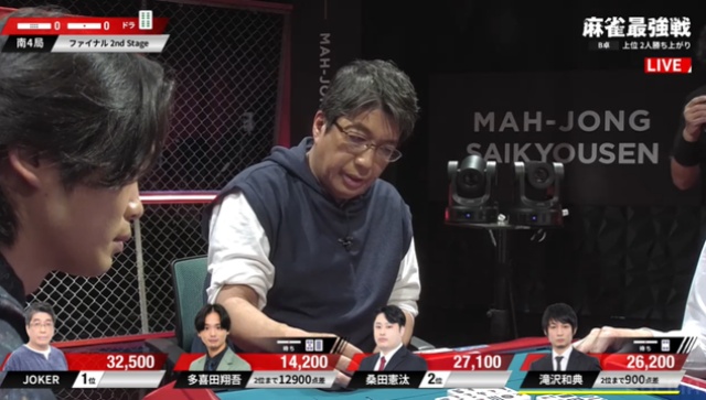 をツモった桑田は裏ドラを2枚乗せ、ハネ満のアガリに。これで多喜田以外の3名が横並びになる。同い年の多喜田と桑田の選択が奇しくもかみ合ってしまう。