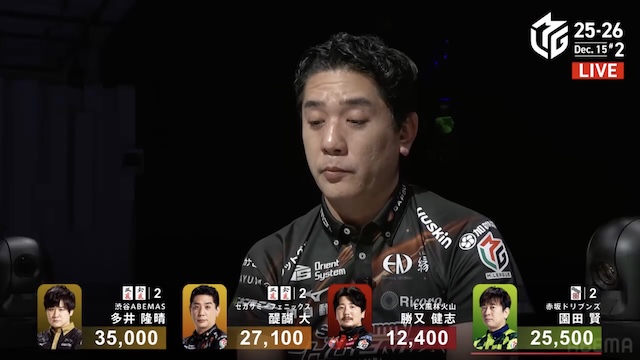 園田さんはまだ親番があって、そこで逆転する力があると思っているので、それだけに心の中に焦りがあるのかなと、ちょっと園田さんを心配になりました。たぶん本人の中で、ここは勝負しようと決まったんでしょうね。だからこそ目いっぱいの