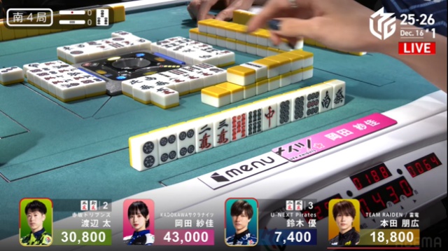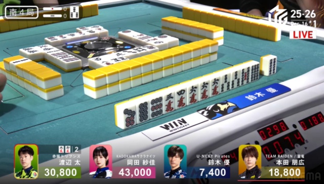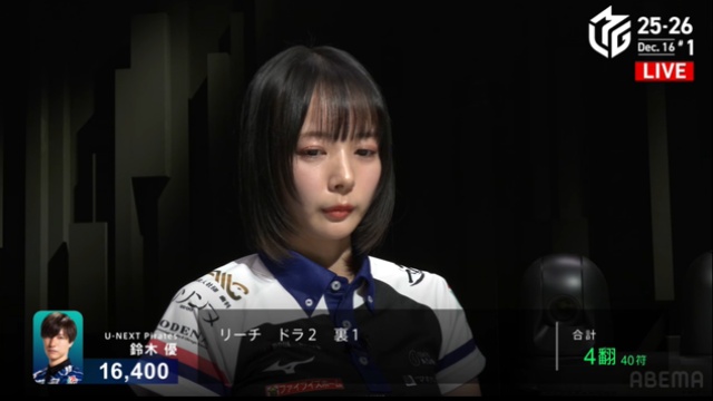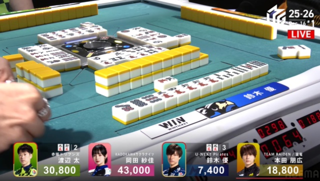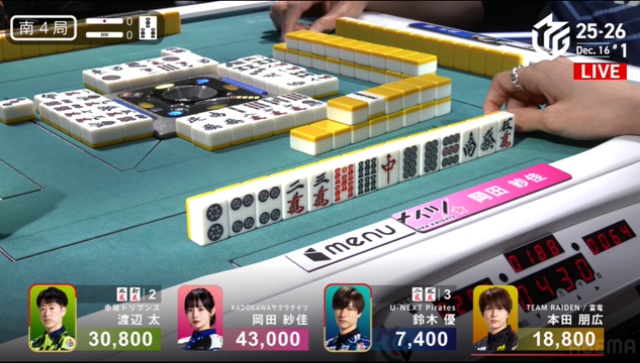 しかし8巡目、優が通っていない牌を3枚切ってのリーチに。優はツモれば3着と岡田だけでなく本田も着ダウンのピンチに。