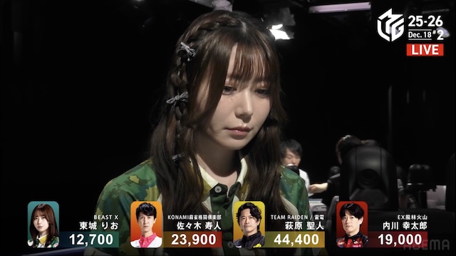 ただ、やっぱり麻雀ってドラマなんだなと思ったのは、目立って良くて悪いところもなかった東城さんが、トップを狙いに行って、トップを取れそうなところからラスになっちゃったんですよ。道中も良かったし、なんでラスになっちゃったのかはよく分からないです。本当に麻雀って怖いですよね、普通は東城がトップになる試合でしたから。