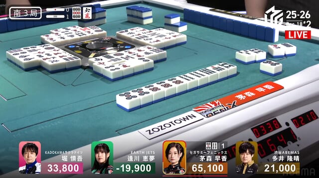 ミスをしたわけではない。選択も間違っていない。ただただ非情な展開。これが麻雀というゲームの厳しさ。逢川はわずか3局で箱下まで沈んだ。