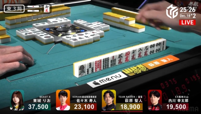 西家:萩原聖人(TEAM RAIDEN / 雷電)