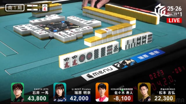 一馬、瑞原、松本は前回の登板でラスをひいている。特に瑞原は、オーラスで痛恨の12,000を放銃し、トップからラスまで引きずり下ろされた。嫌な記憶は早めに乗り越えたいところだ。