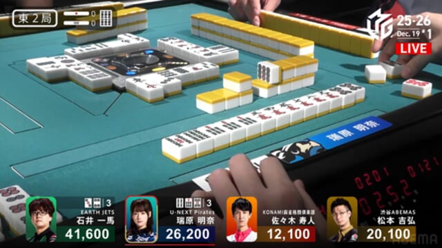 待ち枚数では寿人に劣るものの、瑞原はここでもツモアガリを決めた。