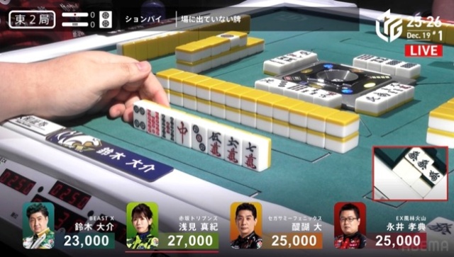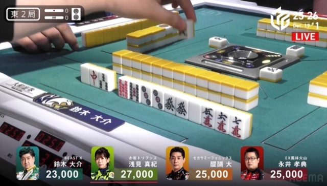 に手がかかるだろうが、大介は明らかに大三元あるいは打点を意識している。