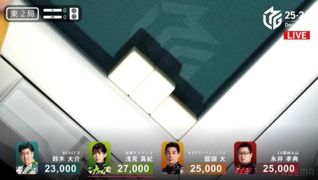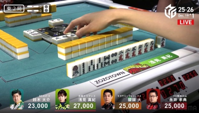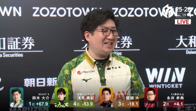 チーム内の成績を振り返ると、下石戟、中田花奈、東城りおの3選手がそれぞれトップ率3割をオーバーしている中で、大介は14戦1トップ7ラスと一人苦戦を強いられていた。
