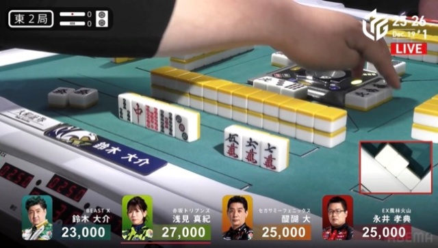 浅見の字牌整理により矢継ぎ早に打ち出される三元牌。