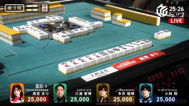 「私も仕掛ける方なんですけど、今日は仕掛けられた上家(三浦さん)の嫌さを味わいましたね(笑)。オーラスはリーチがきてドキドキしてましたが、テンパイまで来れたので、あとは最後まで押すと決めていました!」