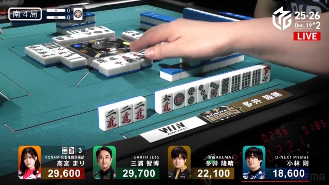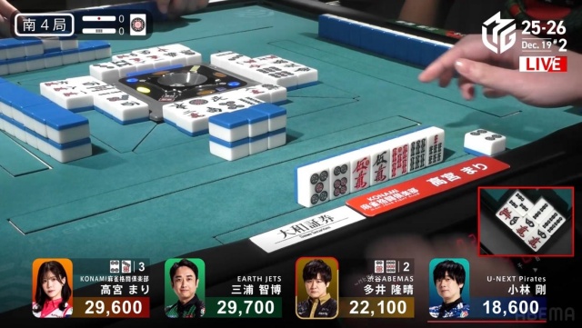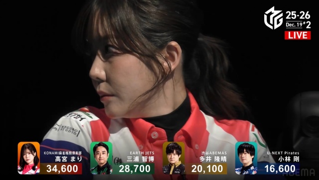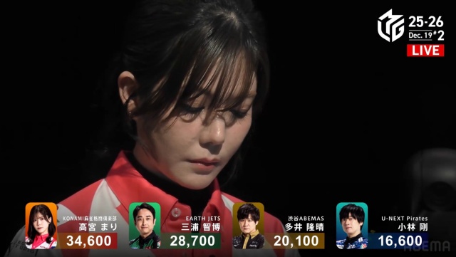 トップ目の三浦とは100点差。つまり、アガリトップである。