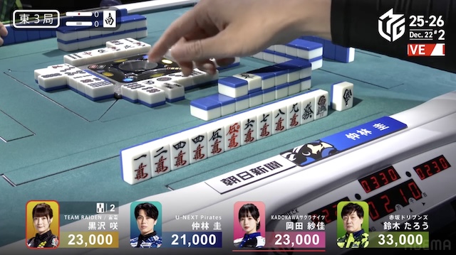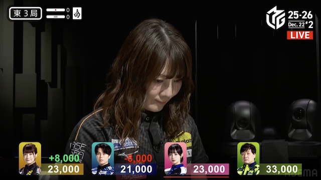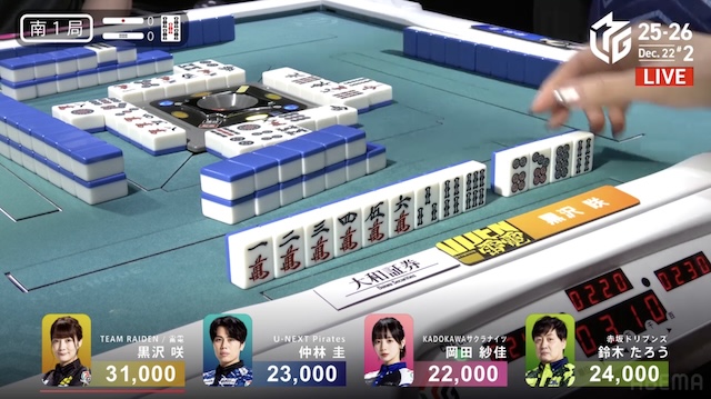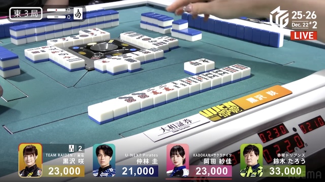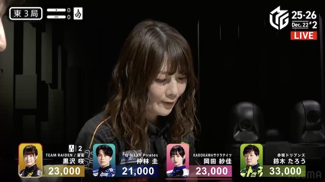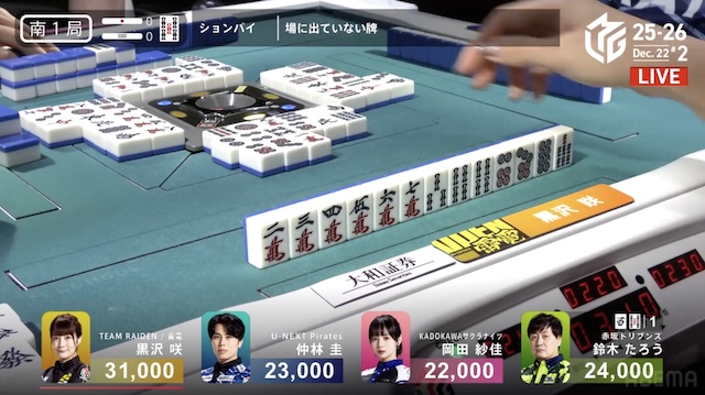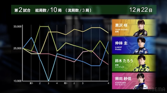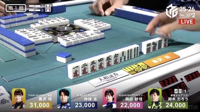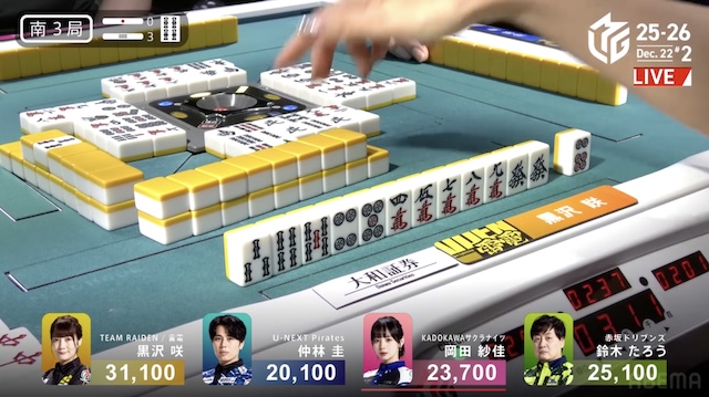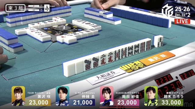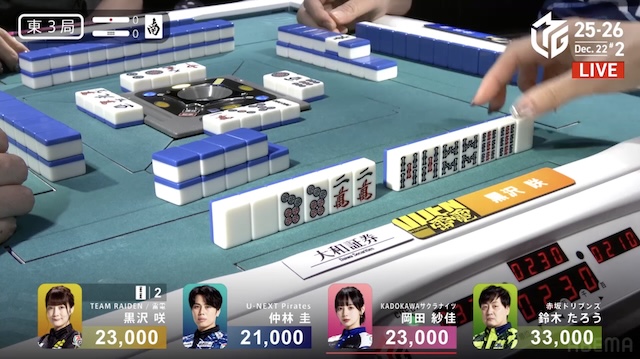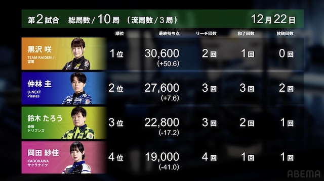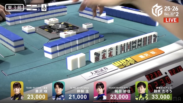 大和証券Mリーグ2025-26、12月12日の第2試合は黒沢咲がトップを取った。