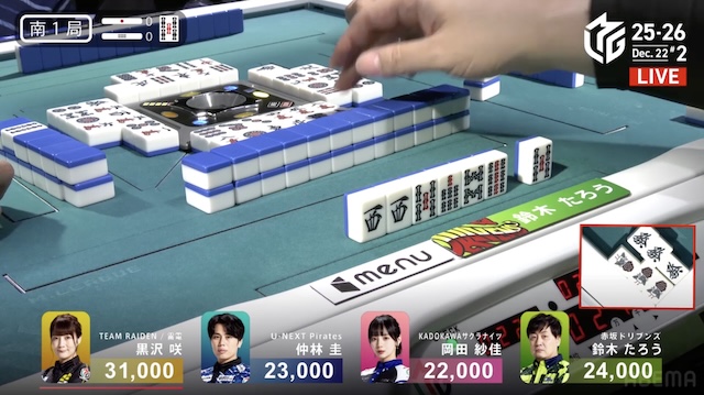 西家:岡田紗佳(KADOKAWAサクラナイツ)