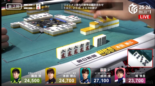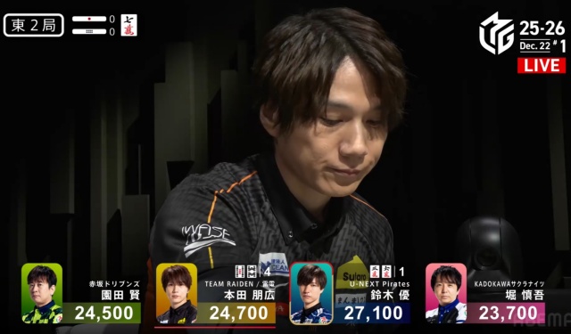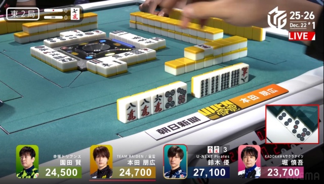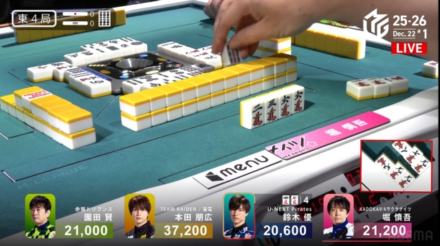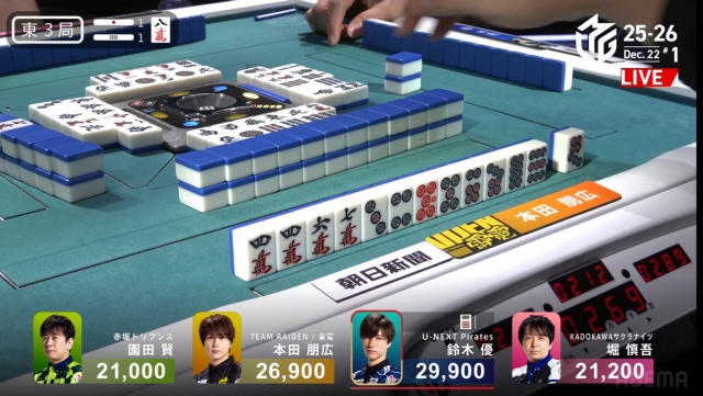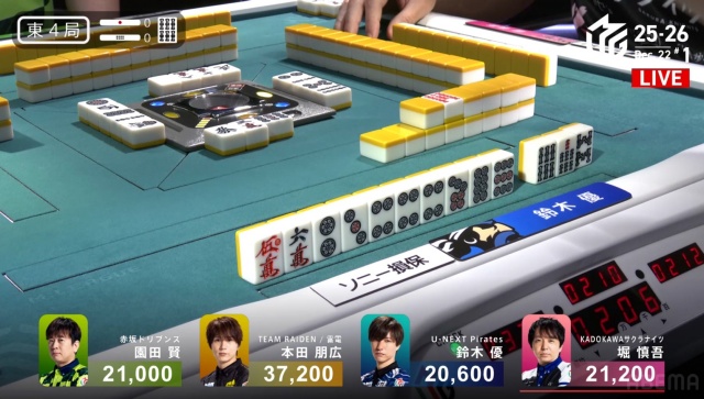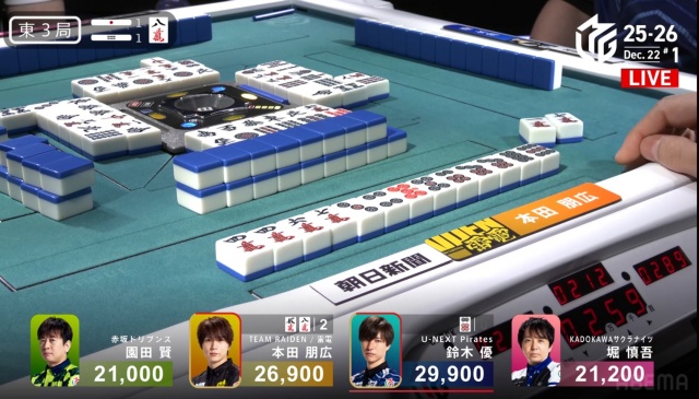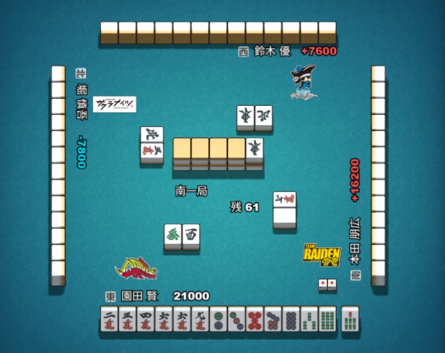 ここまでなかなかアガリがでない園田が、南場の親番を迎える。