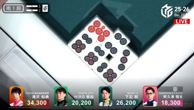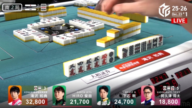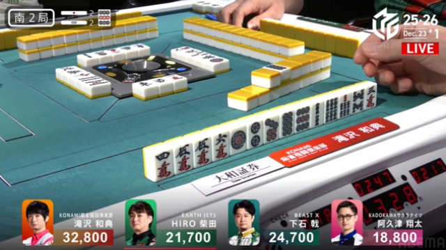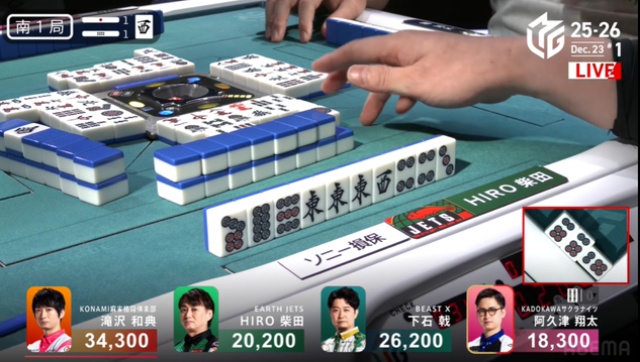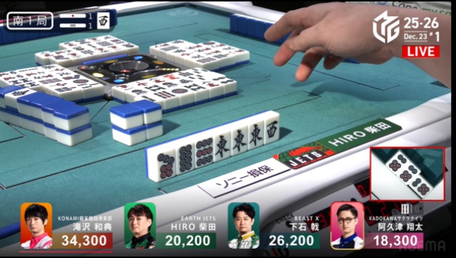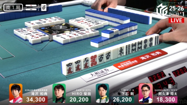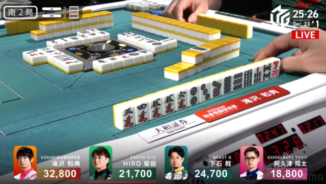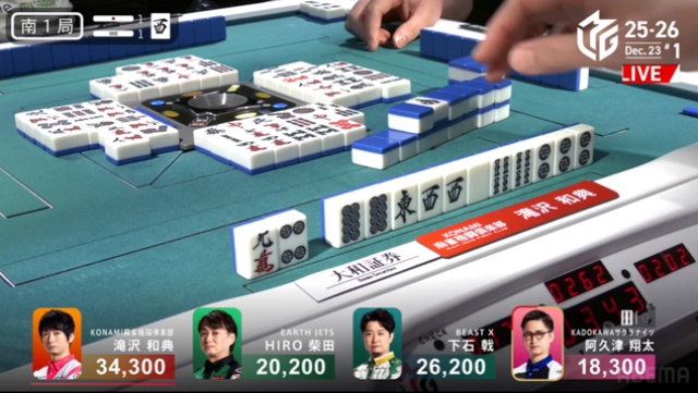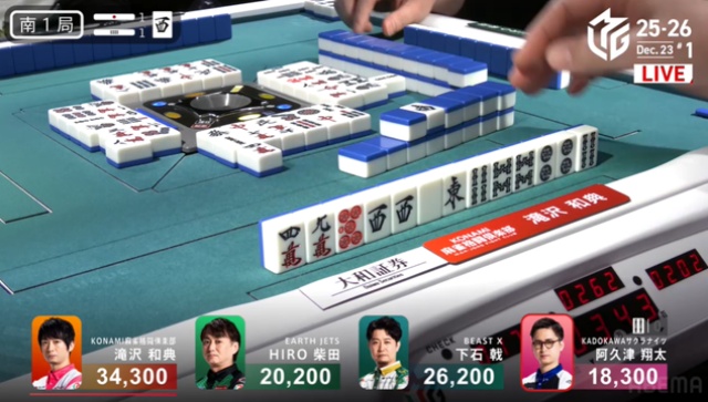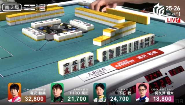 東家:滝沢和典(KONAMI麻雀格闘倶楽部)