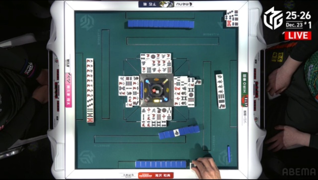 とした。滝沢はこの局を振り返り、「見事におろされました。点棒を持っているので、オリてもいいかなと思ったけど。ただ今牌譜で開かれた手をみて『やられたな』」と答えた。