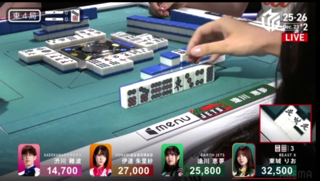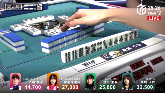 前局もそうだが、リーチを宣言するスピードが速く、このあたりはチームメートの佐々木寿人の如く。