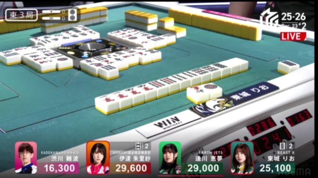 ただ、誰も30000点には満たず、点棒状況はまだ平たい。