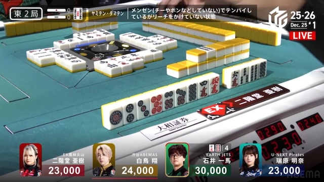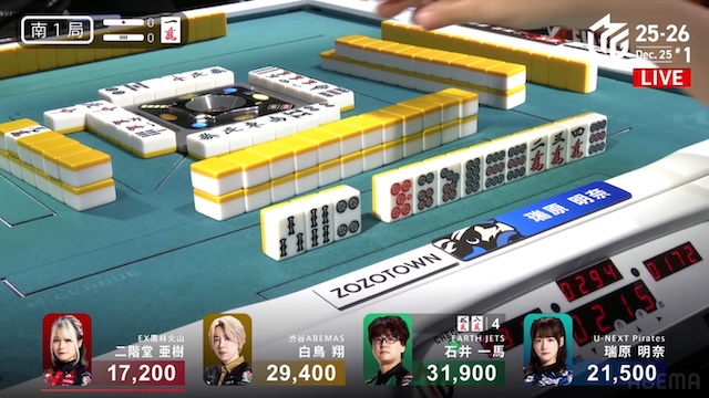 裏ドラが欲しい場面ではあったが、序盤で確実に点を積み上げていく。