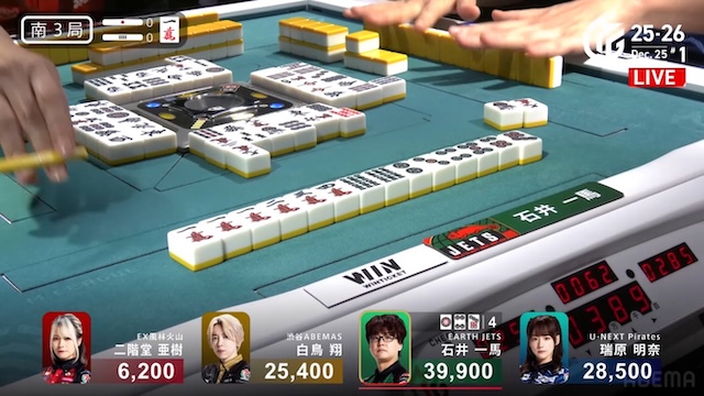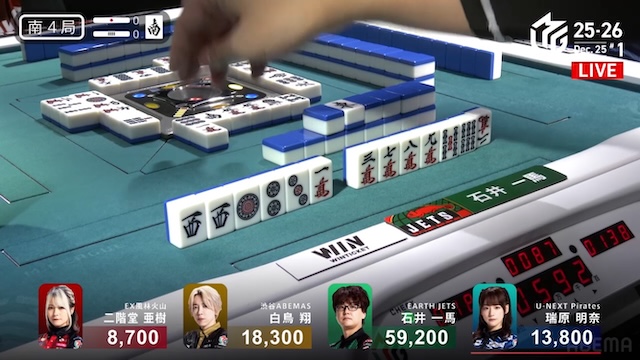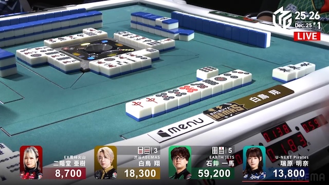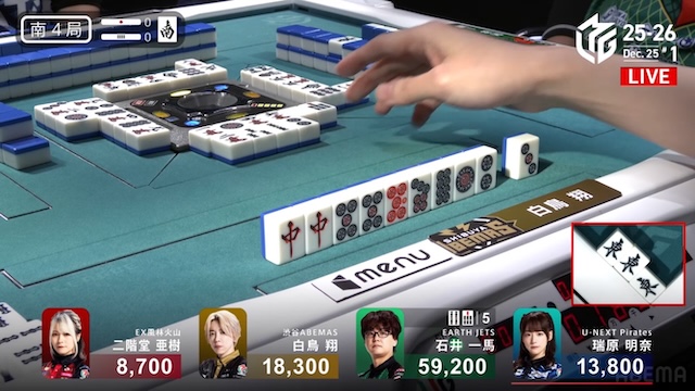 その後、ドラをトイツにした白鳥から追っかけリーチが入るが、一馬が