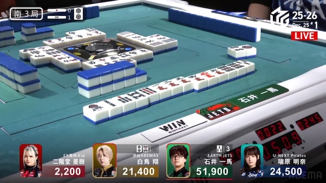 5万点を超える親番でも、冷静な読みと決断でアガリ切るところに、一馬の強さが表れていた。