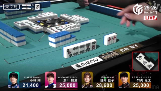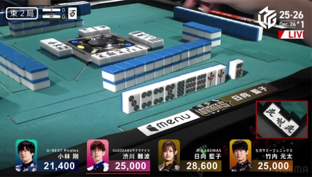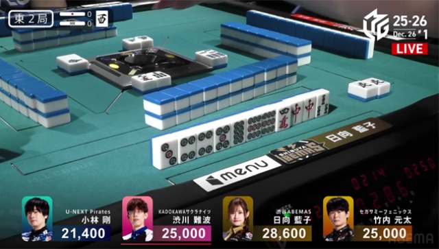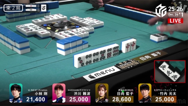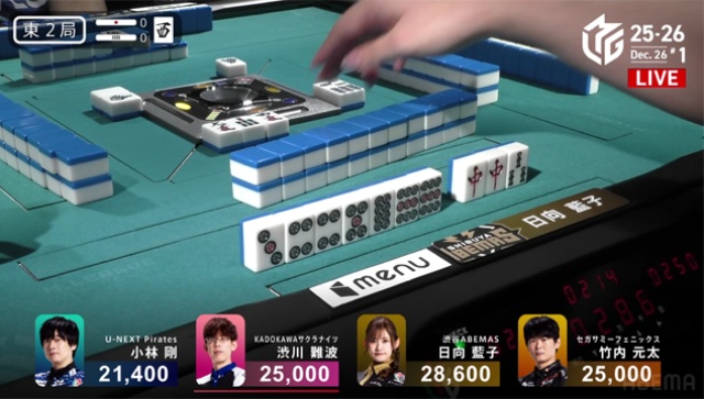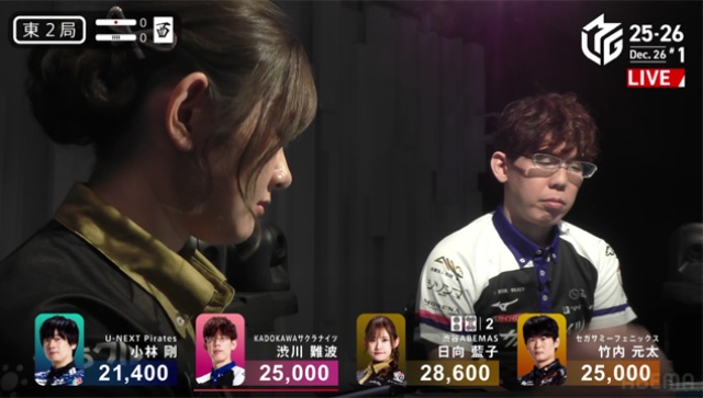 12/26、麻雀LIVEチャンネル第1試合は、こちらの4選手で行われた。