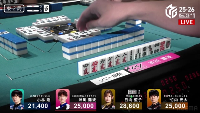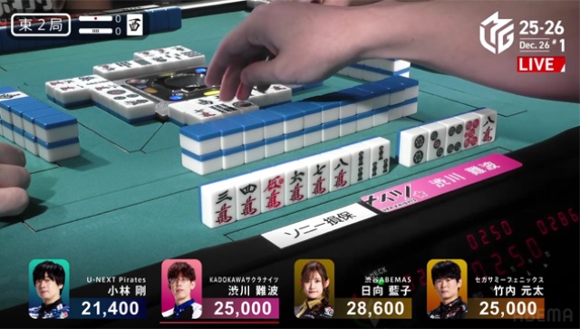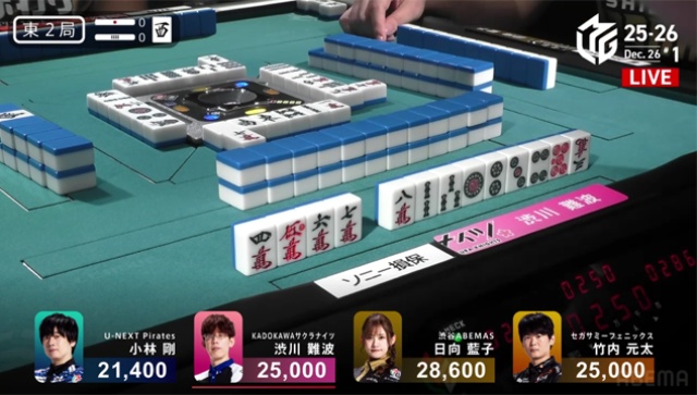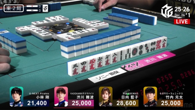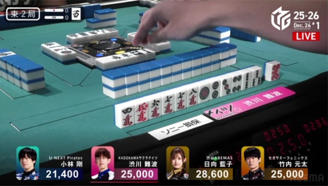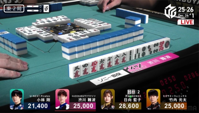 鮮烈な赤5筒一発ツモ! 渋川難波の大反撃宣言【Mリーグ2025-26 レギュラーシーズン 観戦記 12/26 第1試合(麻雀LIVEチャンネル)】担当記者 ヤマサンブラック