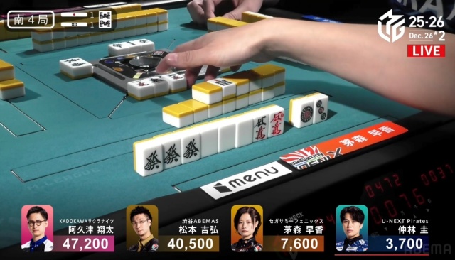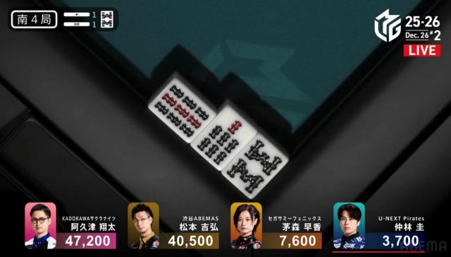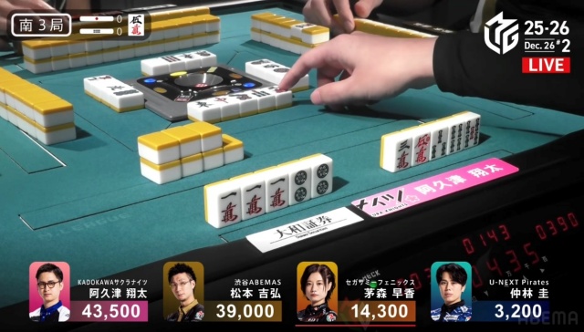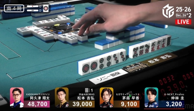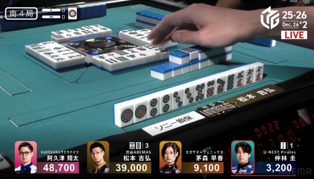 松本はアガリこそ掴めなかったが、阿久津からテンパイ料を奪うことに成功。