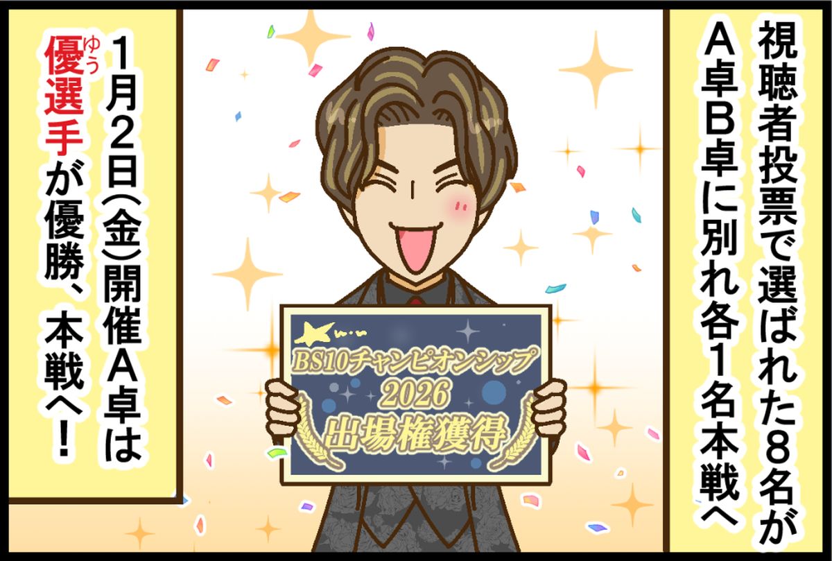 — 日清食品Presents 麻雀オールスター BS10チャンピオンシップ (@BS10_MahjongCS) January 2, 2026