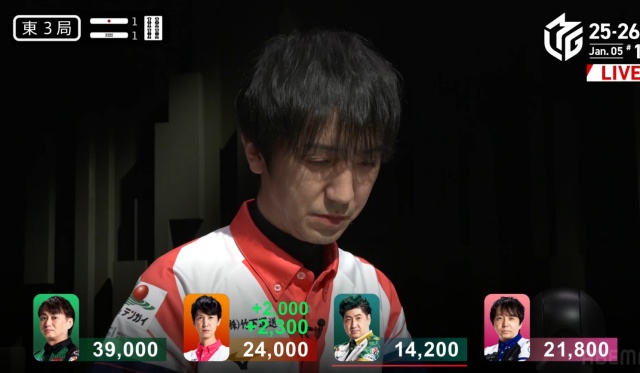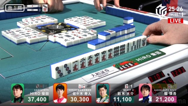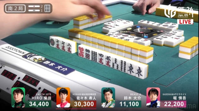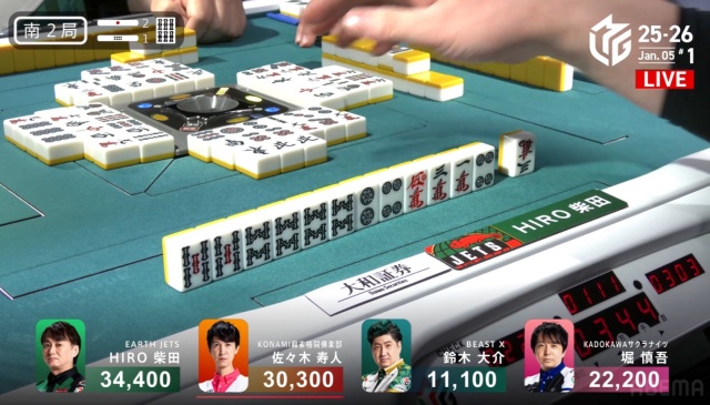 これで柴田はこの半荘2度目の一人ノーテンとなり、2着目寿人との点差がさらに縮まってしまう結果となった。