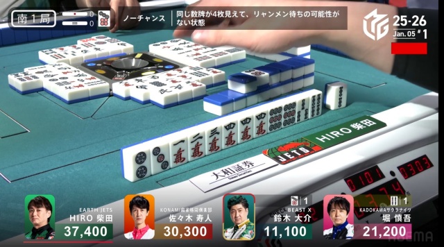 大介からリーチが入った後、柴田にもテンパイが入る。