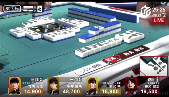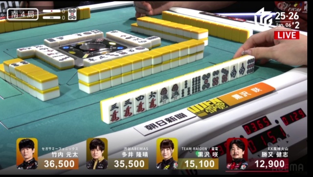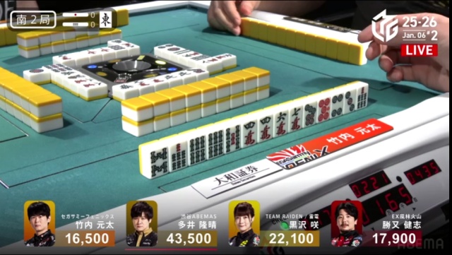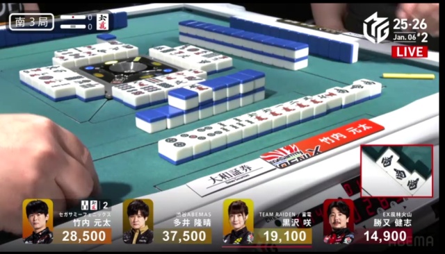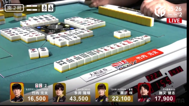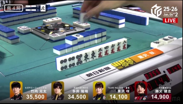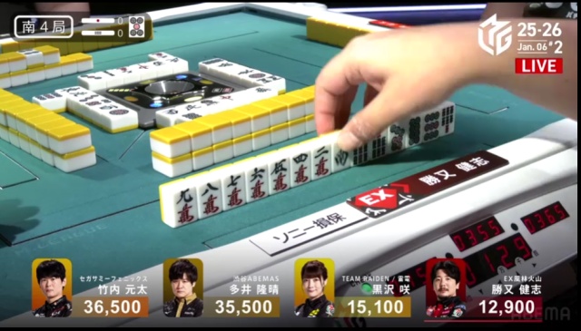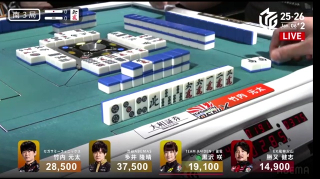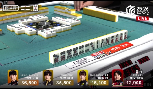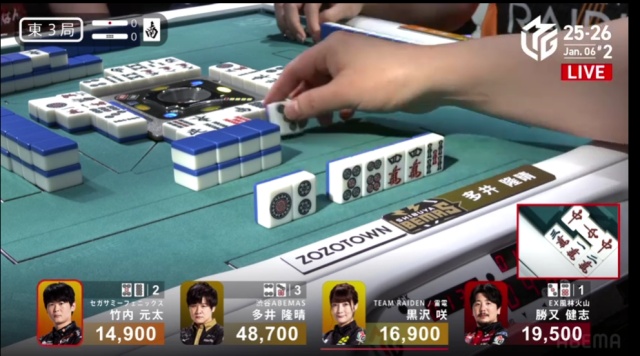 2着の多井は、黒沢にあがられるとトップを逃す。親の勝又にも鳴きが入り、いま出た