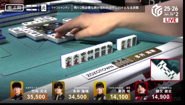 トップ目の多井に親かぶりをさせ、その差は満貫ツモ圏内となった。