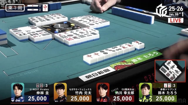 内川君は東3局1本場、![]()