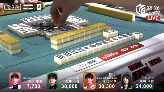リーチをかけた滝沢が悠々とツモアガる。