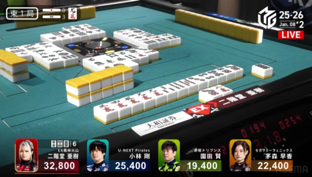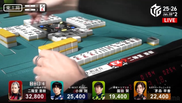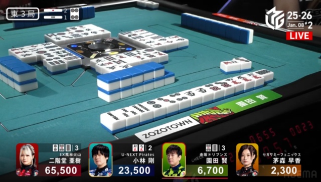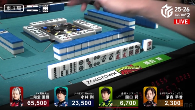 最終的には園田がツモ!耐えて耐えての2600オール!