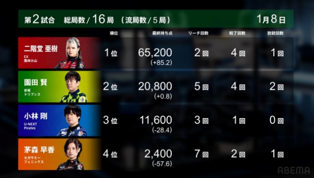 正直、この試合はもう亜樹のトップは固い。2着はどのチームにとっても喉から手が出る