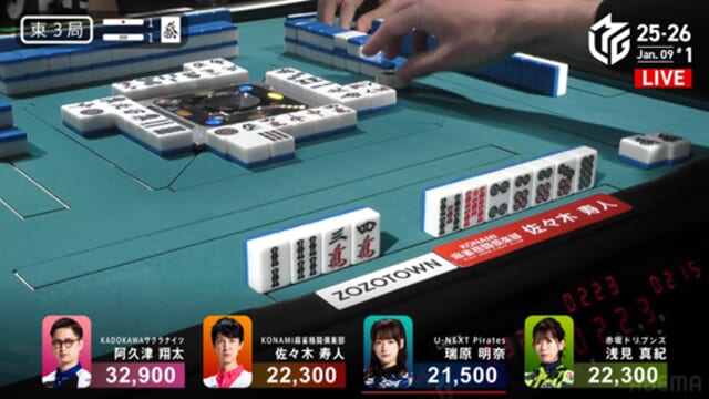 南家:佐々木寿人(KONAMI麻雀格闘倶楽部)