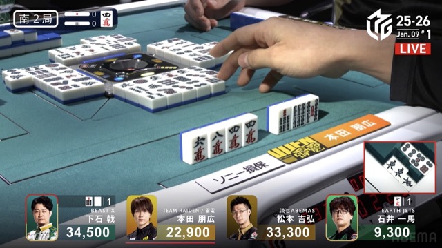 を放つ本田に「ロン」の声は下石。