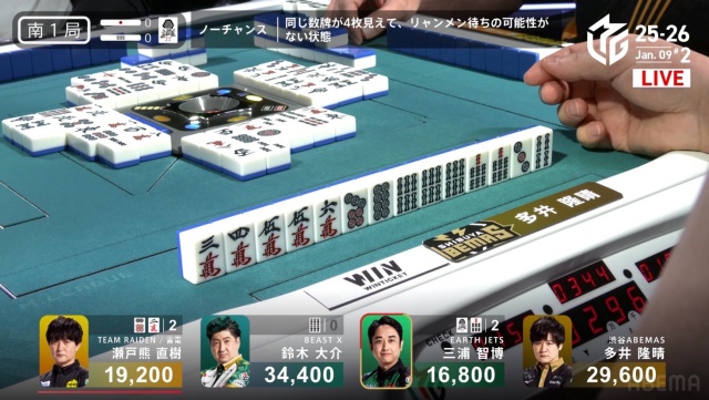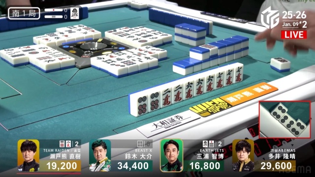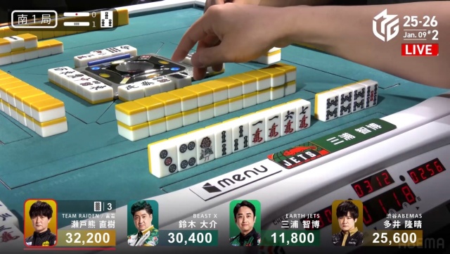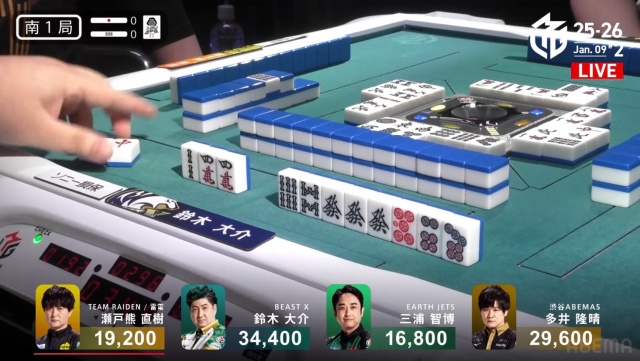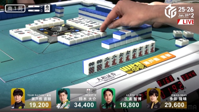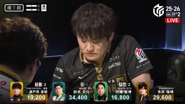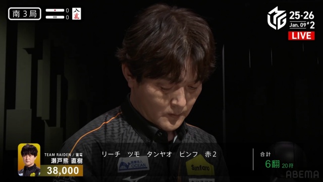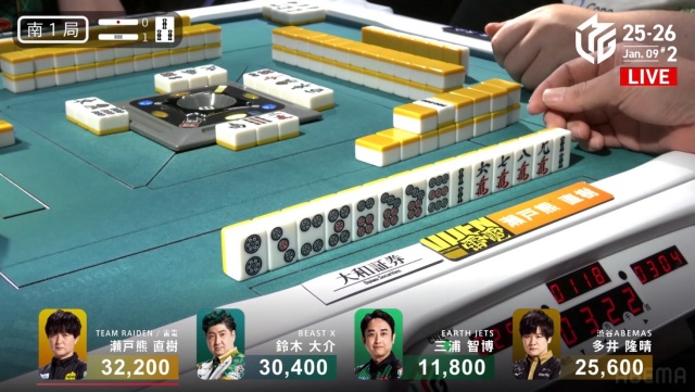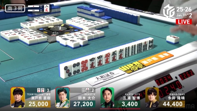 西家の三浦に先制リーチを許す中、虎視眈々とエネルギーをためていた親・瀬戸熊が遂に動き出す。