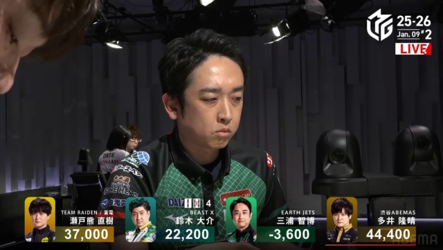 3着目の大介でさえ、25,000点以上の差がある三浦が