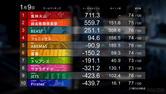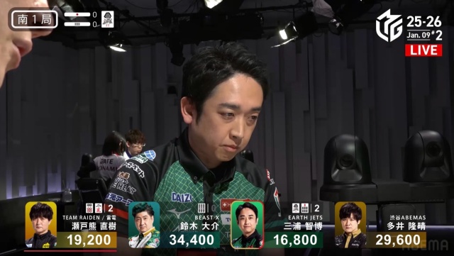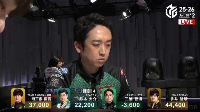 「あと、チームポイントの話をするにはまだ早いのは前提で。最悪、大介さんが倍ツモしてトップになったとしても、