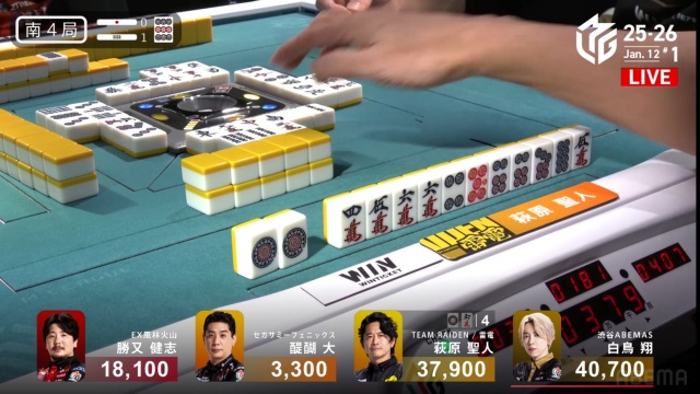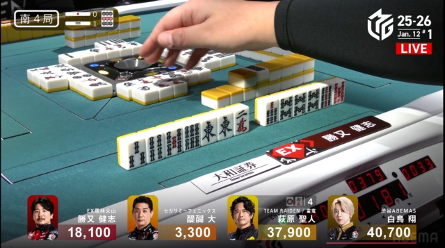 今日の南4局1本場のめくり合いでの姿勢は、まさにそんな萩原の姿勢が全面に出ていたように思う。