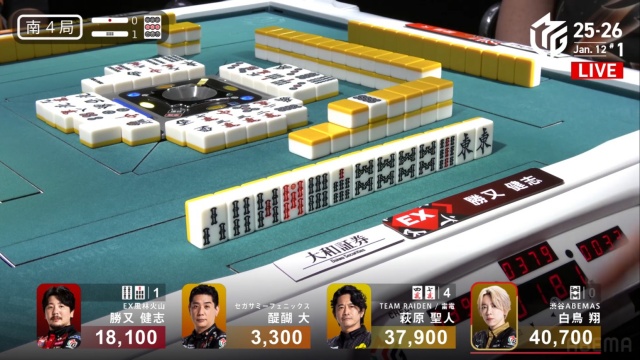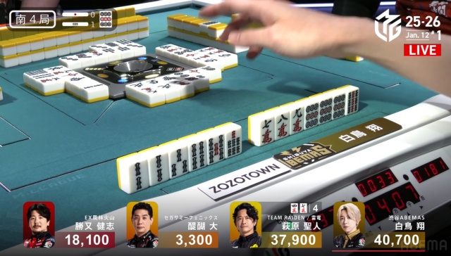 醍醐が放銃に回ったことにより、4着回避が比較的容易になった勝又が、着順アップを狙ってソーズの染め手へ。