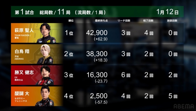 1本場の300を足しても、白鳥以外からの出アガリはトップに足りない。