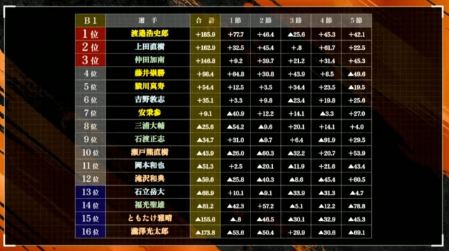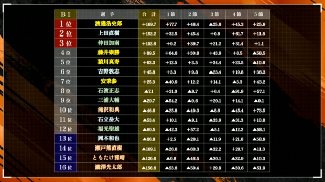 瀬戸熊の卓は放送ではなかったため、詳しくは見れなかった。しかし終わったときにこの表はこう変わっていた。