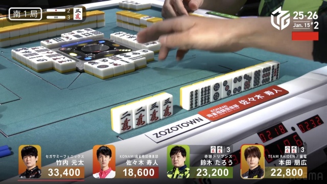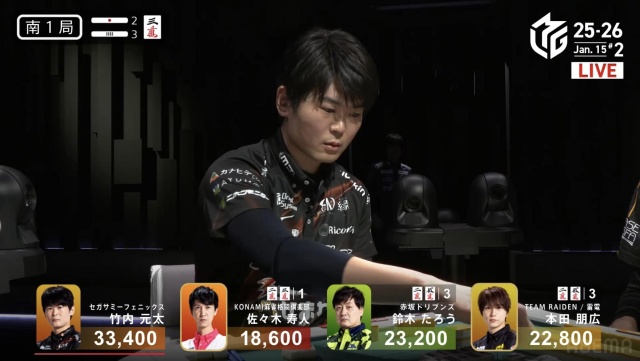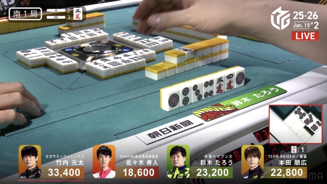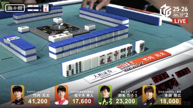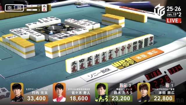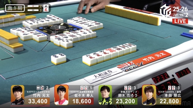 一歩抜け出した元太。続く南1局4本場も、攻めの手を緩めない。