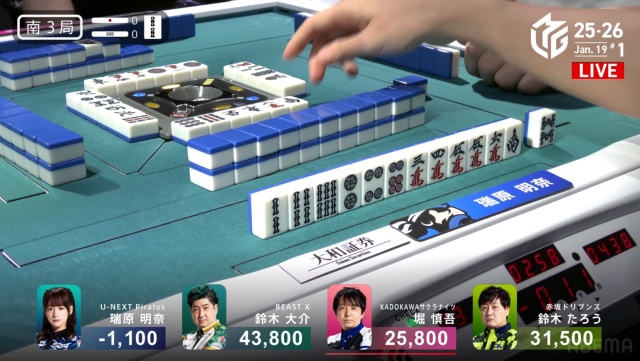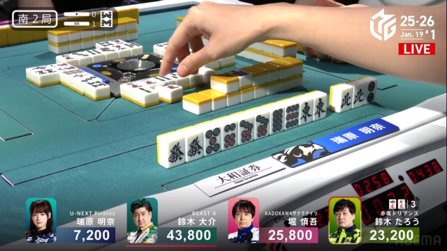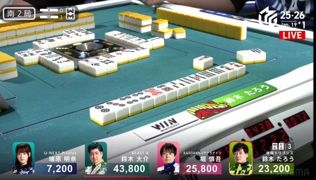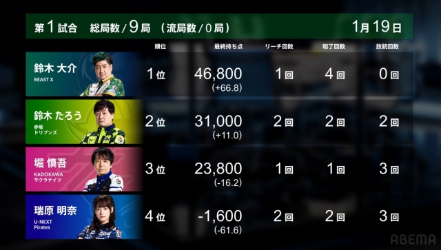トップとなったのは、東1局の12000のリードを守り切ったBEAST X鈴木大介。