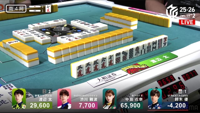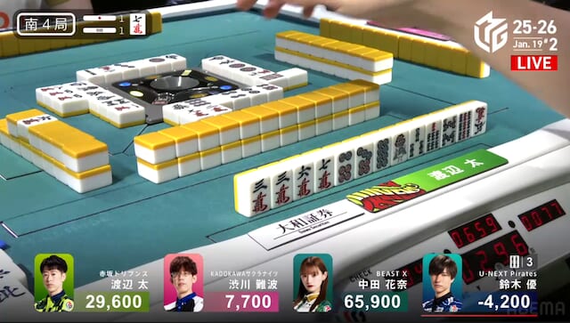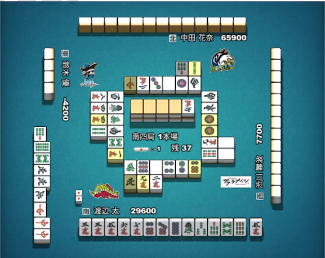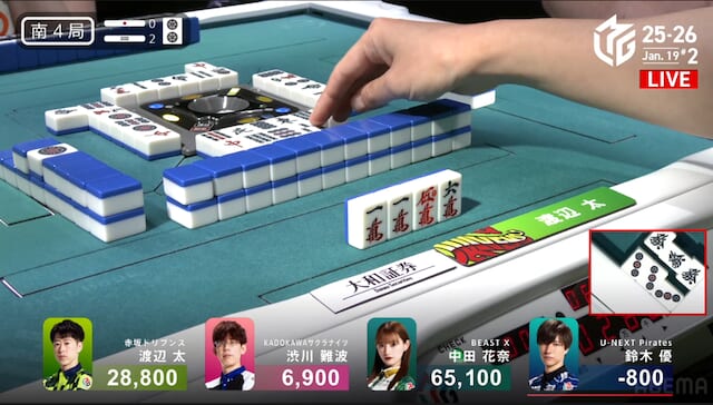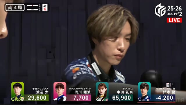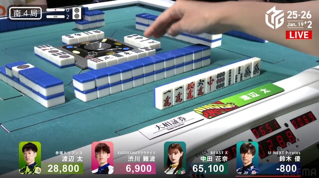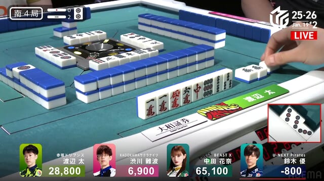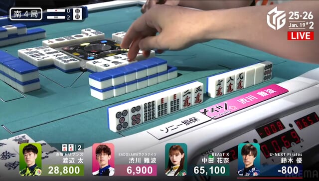 ここで優との捲り合いにするよりも、渋川と中田を生かして自分以外にも和了ってくれる人を増やそうという判断。