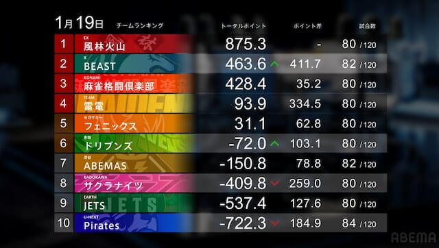 パイレーツは沈み、ビーストは大きな浮上。今までのレギュラーシーズンであれば残り16試合相当と結構なピンチであったが、今年からは残り40試合。これは嵐の中の希望とみるか。