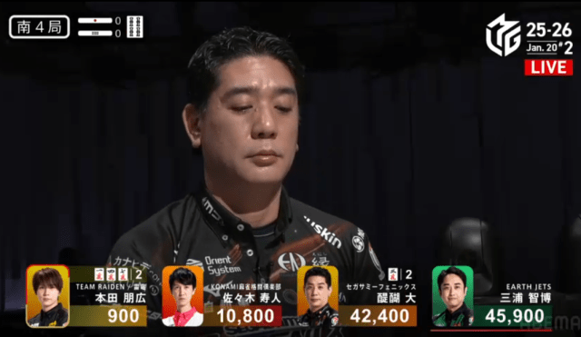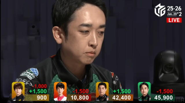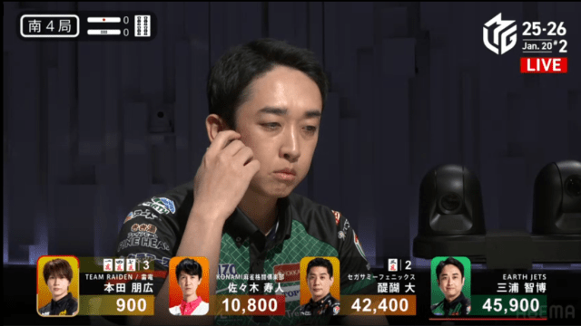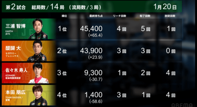 醍醐と本田のふたりテンパイ=順位変動なしで終局。